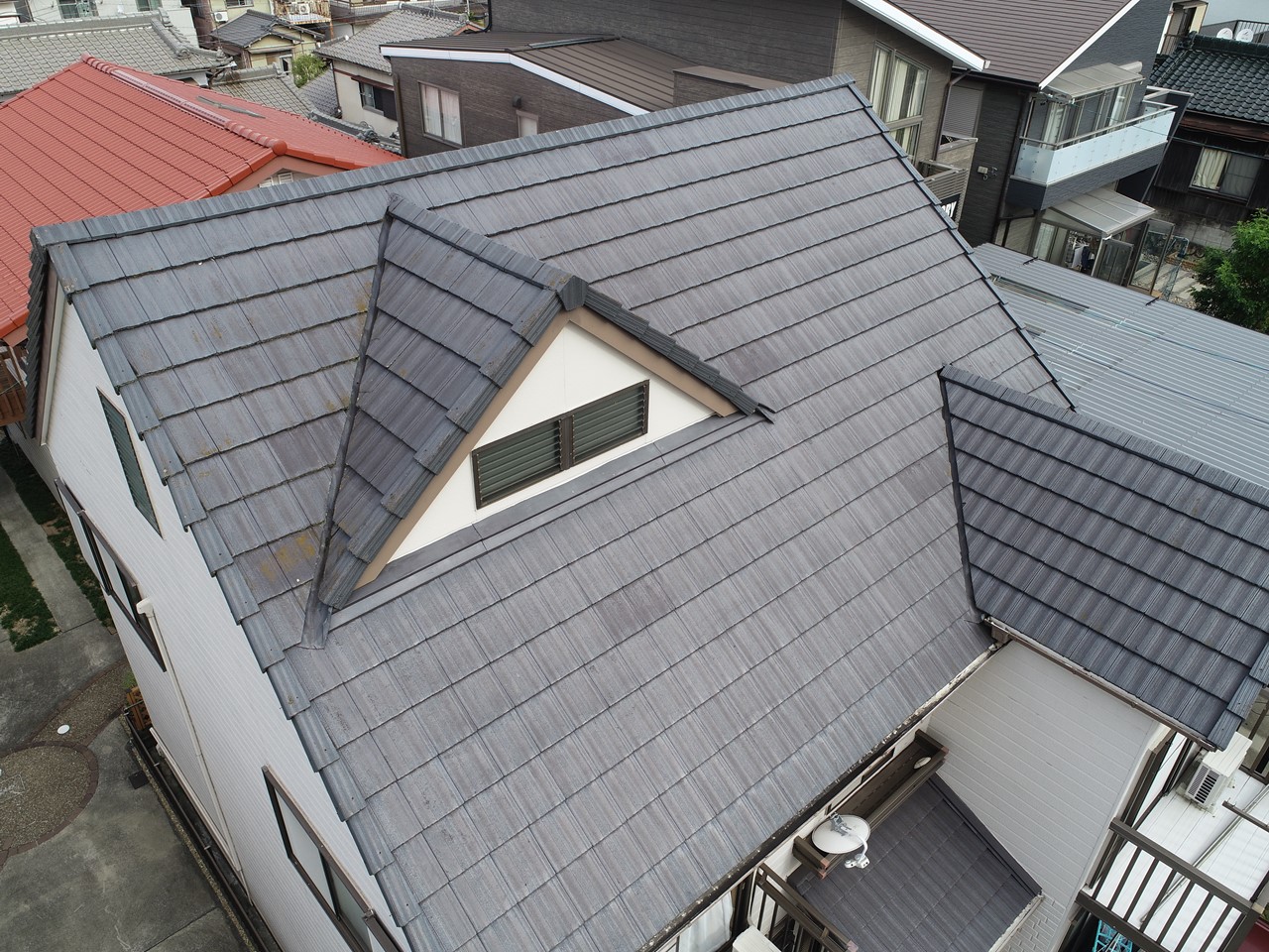 急勾配の切妻屋根でしたが、壁際の取り合い部分からの雨漏りでした。