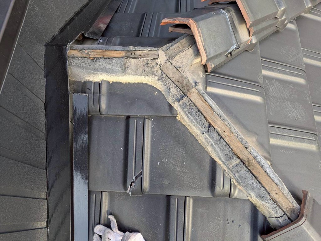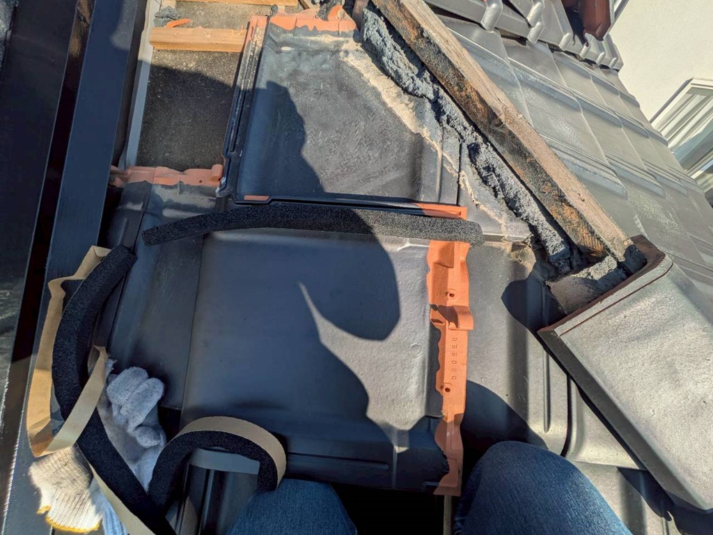 あとは漆喰を設置し直して、棟瓦も戻してパッキン付きビスで固定して工事完了です。